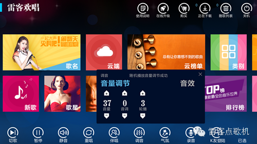 雷客点歌机迎中国好声音学员明星祝福!开机视频声音大?点歌界面首页-调音-轮播可设置哦!