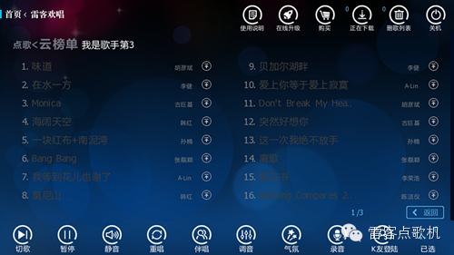 雷客点歌机云榜单《我是歌手第三季》专题即将更新第五期7首竞演歌曲,曲库的小伙伴们周一就为大家准备好啦!请及时关注并下载更新哦,和你喜欢的歌手一起歌唱!
